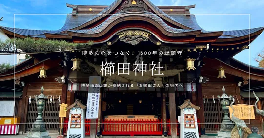 博多祇園山笠が奉納される総鎮守、県指定天然記念物の夫婦銀杏、不老長寿の霊泉として信仰される鶴の井戸。櫛田神社の境内には、博多の歴史と文化が凝縮されています。